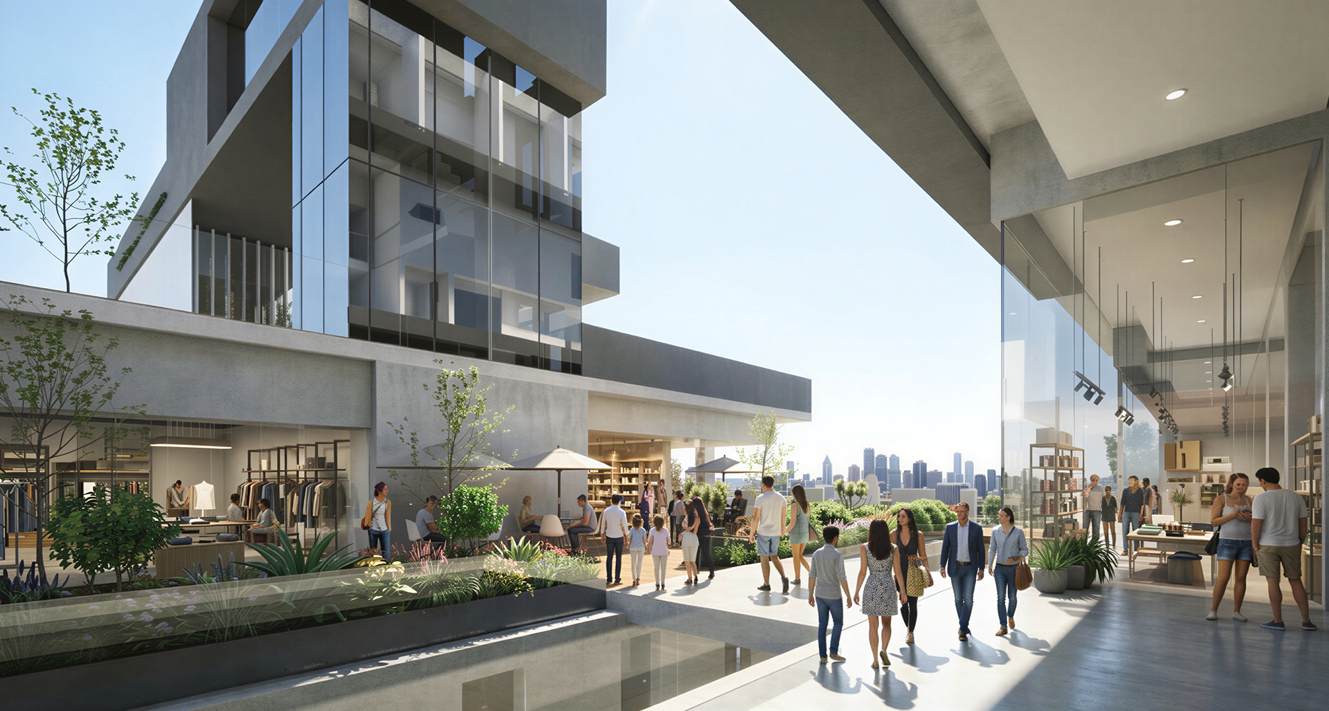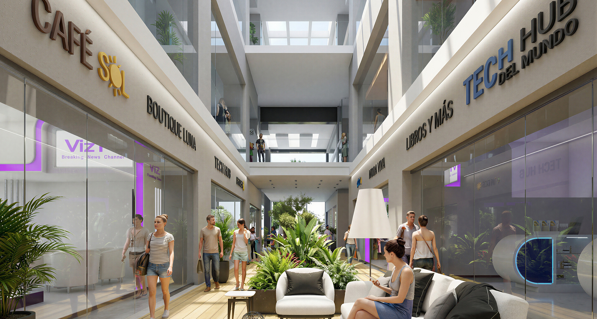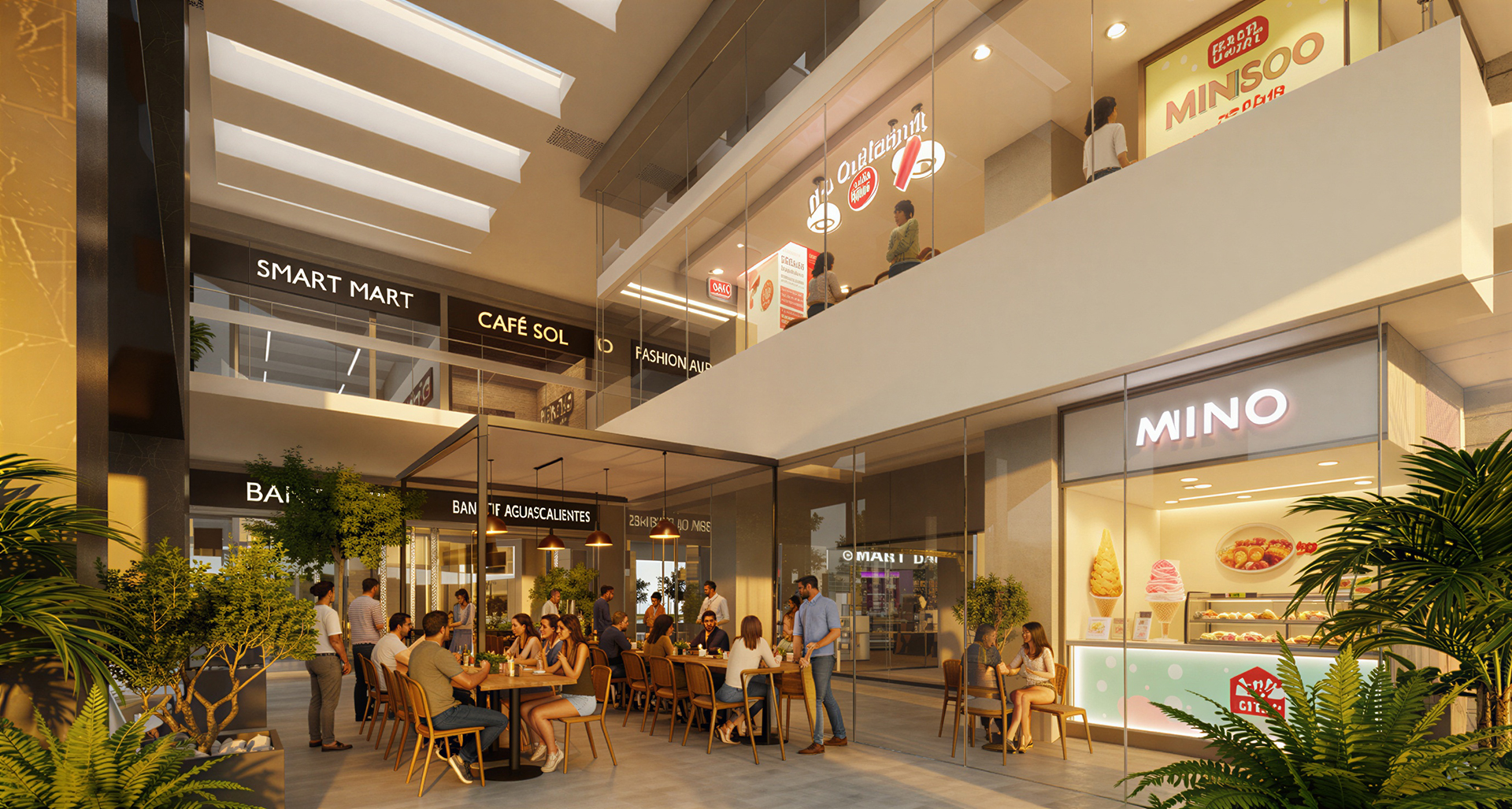 50 locales comerciales desde 30m2 ubicados en Planta Baja, Piso 1, 2 y 3, con áreas comunes, terraza y estacionamiento.