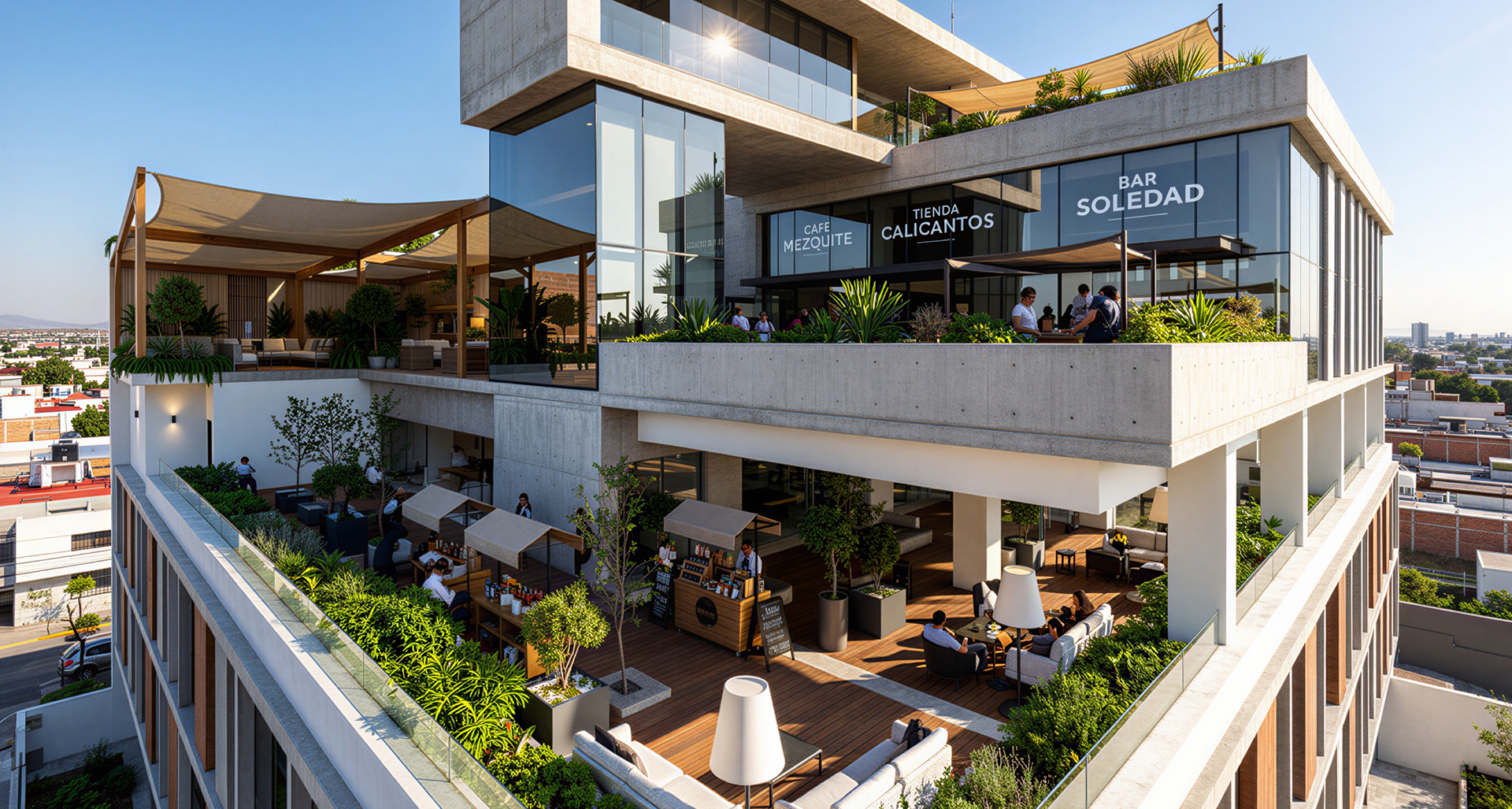 - Planta Baja y Piso 1, 2 y 3 área comercial y corporativos